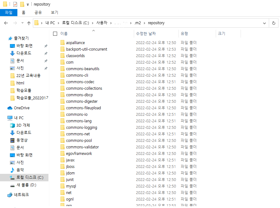| C:\Users\๋ณธ์ธ์ฌ์ฉ์๋ช ํด๋\.m2\repository |
