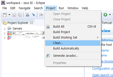 | ์ดํด๋ฆฝ์ค -> ์คํํ ์๋ฒ ๋ง์ฐ์ค ์ค๋ฅธ์ชฝ -> Clean... |