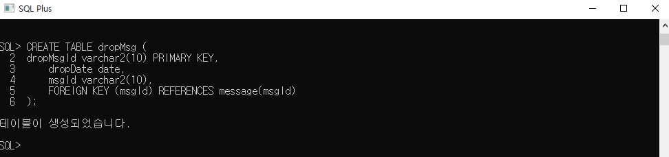 - dropMsg ν μ΄λΈμ λ©μΈμ§λ₯Ό μμ ν λ΄μμ μ μ₯νλ ν μ΄λΈμ λλ€.