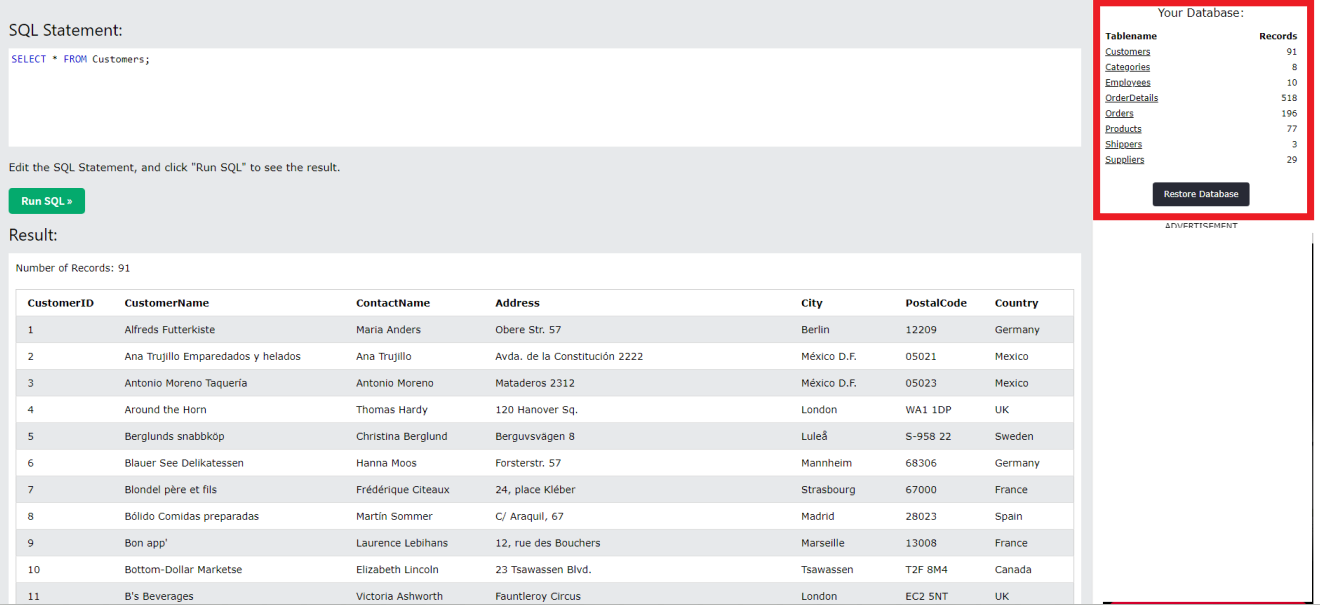 ์ด ์ฌ์ดํธ์์ ์ ๊ณตํ๋ Database ์ค, Customers ํ ์ด๋ธ์ ๋ฐ์ดํฐ๋ค์ ๋ฝ์ ๋ชฉ๋ก์ ๋๋ค.