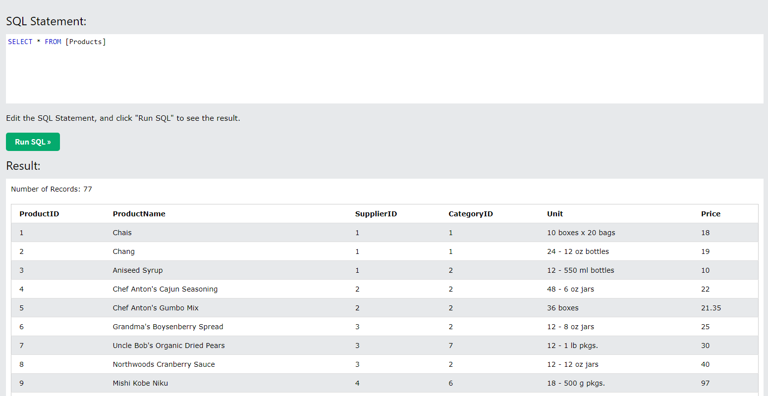 - ๋๊ฐ ๊ณต๊ธํ๋์ง(Supplierํ ์ด๋ธ์ ์๋์), ์ํ์ด ์ด๋ค ์นดํ ๊ณ ๋ฆฌ์ ์ํ๋์ง๋ฅผ ์์ ํ ์ด๋ธ๋ค๊ณผ ์ฐ๊ฒฐํ๊ธฐ ์ํด ๊ฐ ํ ์ด๋ธ์ primary key๋ก ์ฐ๊ฒฐํ๊ณ ์์ต๋๋ค.