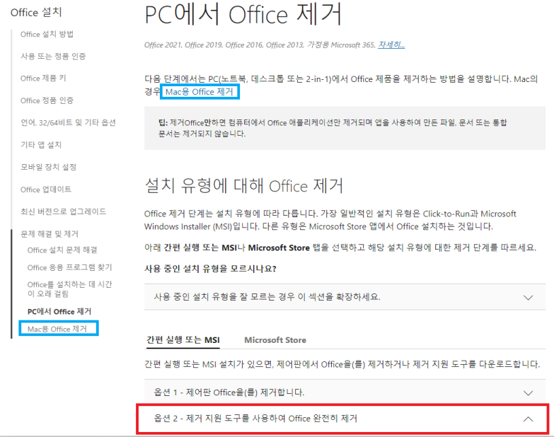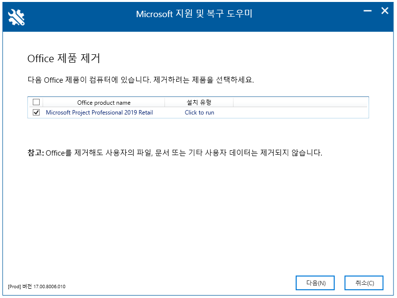ํ๋จ์ ์ต์ 2 - ์ ๊ฑฐ ์ง์ ๋๊ตฌ๋ฅผ ์ฌ์ฉํ์ฌ Office ์์ ํ ์ ๊ฑฐ