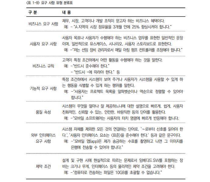 μꡬ μ¬νμ λμ λ²μμ κΈ°μ κ΄μ μ λ°λΌ μ¬μ©μ μꡬ μ¬ν(User Requirements)κ³Ό μμ€ν μꡬ μ¬ν(System Requirements)μΌλ‘ ꡬλΆνλ©°, κΈ°μ κ΄μ κ³Ό μμ€ν μ λ―ΈμΉλ μν₯μ λ°λΌ κΈ°λ₯ μꡬ μ¬ν(Functional Requirements)κ³Ό λΉκΈ°λ₯ μꡬ μ¬ν(Non-Func tional Requirements)μΌλ‘ ꡬλΆνλ€.
