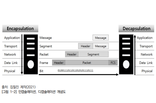 - ์์ ์ง์ ํ์ ๊ณ์ธต์์ ์ธ์ํ ๋ฐ์ดํฐ๋ฅผ ์์ ๊ณ์ธต์ผ๋ก ์ด๋์ํค๋ฉด์ ๊ฐ ๋คํธ์ ํฌ ๊ณ์ธต์์ ์ฒ๋ฆฌ ๊ฐ๋ฅํ ํํ๋ก ๋์บก์ํํ๋ ๊ณผ์