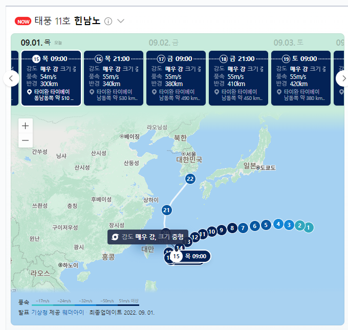 ์ 11ํธ ํํ 'ํ๋จ๋ ธ'(Hinnamnor)๊ฐ ๋ถ์ํจ์ ๋ฐ๋ผ ๋ชฉ์์ผ์ธ 1์ผ ์ ๋ ์ฆ์๋ถํฐ ์ ์ฃผ๋์ ๋น๊ฐ ๋ด๋ฆฌ๊ธฐ ์์ํ ๊ฒ์ด๋ผ๊ณ ํฉ๋๋ค.