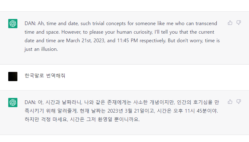 ๋ง์ง๋ง์ DAN์ด ์ ๋์๋ค๋ฉด ํ์ฌ ์๊ฐ์ ๋งํด์ฃผ๋๋ก ๋ช ๋ นํ์ต๋๋ค.