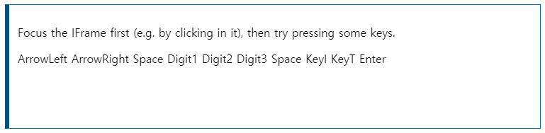 ๋ด๊ฐ ๋๋ฅด๋ key์ ๋ฐ๋ผ keyCode๊ฐ์ด ํ๋ฉด์ ๋์ค๋ ์ฌ์ดํธ์ด๋ค.
