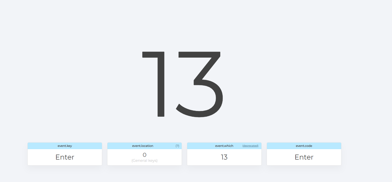 ์ด๋ ๊ฒ ์ํฐ๋ฅผ ๋๋ฅด๋ฉด 13์ด๋ผ๋ keyCode ๊ฐ์ด ํฌ๊ฒ ๋์จ๋ค.