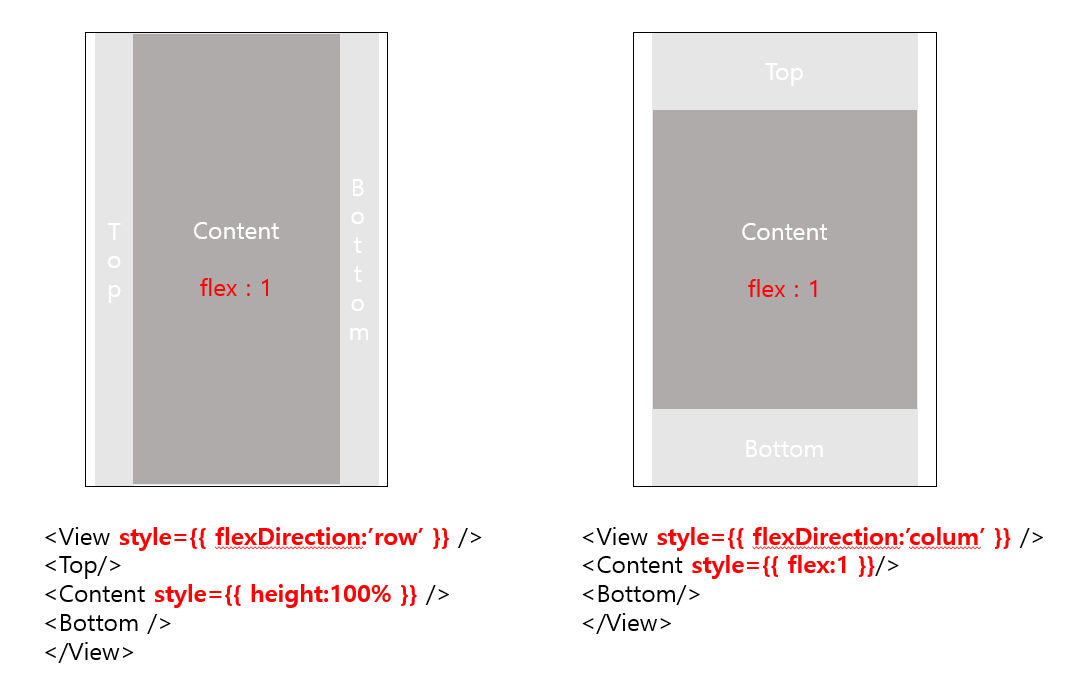๊ธฐ๋ณธ ๋ํดํธ ๊ฐ์ colum์ผ๋ก ๋์ด๋ก ์ง์ ๋์ด ์๋ค. ๊ฐ๋ก๋ก ์ง์ ํ๊ณ ์ถ๋ค๋ฉด flexDirection:'row'๋ฅผ ์ ๋ ฅํด์ฃผ๋ฉด ๋๋ค.