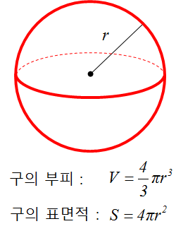 ๊ตฌ์ ๋ถํผ(์ฒด์ )๊ณผ ํ๋ฉด์ ์ ๊ณต์์ ๋ค์๊ณผ ๊ฐ๋ค.