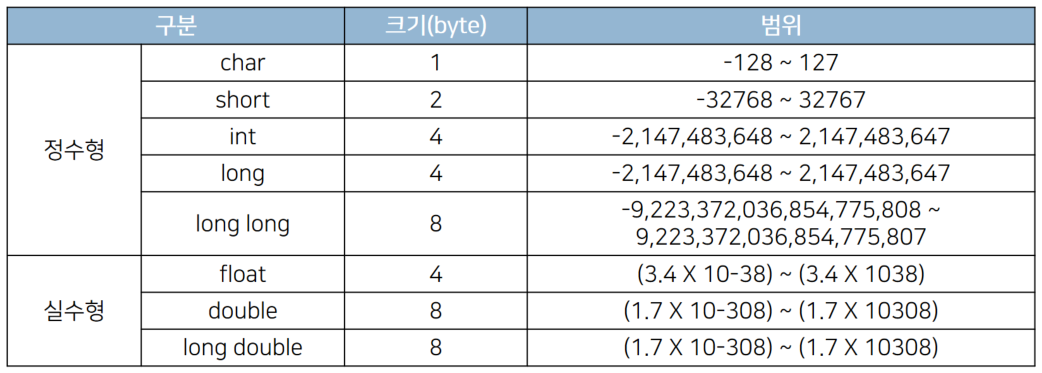 | ์ค์ํ | float | 4 | (3.4 X 10-38) ~ (3.4 X 1038) |