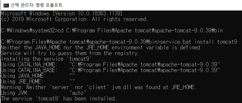 ์ค๋ฅ : ์ง์ ๋ ์๋น์ค๊ฐ ์ค์น๋ ์๋น์ค๋ก๋ ์์ต๋๋ค tomcat 9