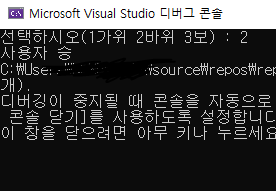 μ¬μ©μλ νλ‘κ·Έλ¨μ μ λ ₯ μλ΄ λ©μμ§μ λ°λΌμ, 3κ° μ€μμ νλλ₯Ό μ ννκ² λλ€.